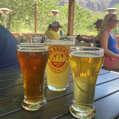 Our lunch stops were my favorite meals in Zion. After hiking Narrows, we ate at Soleil Cafe which is in walking distance of the park entrence. The whole cafe is extremely healthy with smoothies, salads and wraps. Mike and I ate outside, drank cold brew and ate our salads. Highly recommend the greek salad with chicken! After our Angel's Landing hike, we ended up eating at Zion brewery located just outside the park entrence. Not only was the beer ice cold and much deserved, but the nutritious apple pecan chicken salad was out of this world. I made a few modifications like no cheese and dressing.
