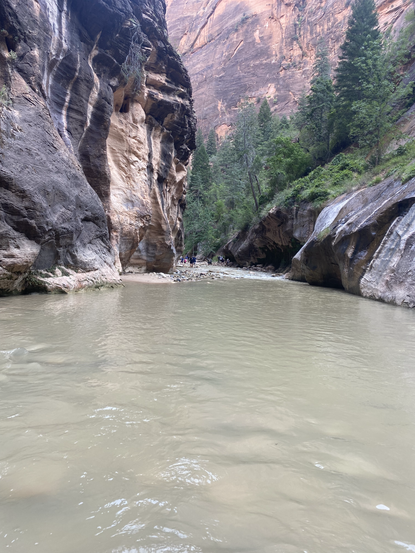 The Narrows path is about 4.5 miles down in total; but it is a down- and - back trail. Therefore, you're able to turn around whenever you like. I had high expectations that we would do the entire journey but after realizing how challenging it is to hike upstream in water, we decided to do 2.5 miles down. We still got amazing views and laughs to cherish and remember! The hike back (another 2.5 miles) isn't as easy as you'd hope. The current is pulling you the direction you want to go, increasing your chances for falling. So, utilize the walking stick and be careful!